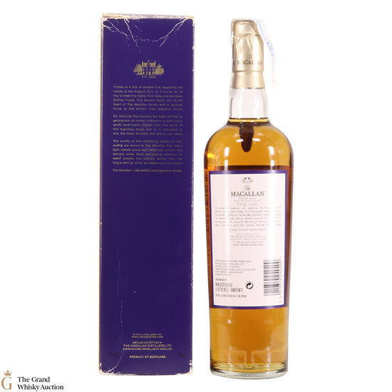 An 18 year old single malt, part of Macallan's Fine Oak range. It has been matured for eighteen years in three oak cask types; Europen oak seasoned with sherry, American oak seasoned with sherry and American oak seasoned with bourbon. This complex combination of casks has created a light amber single malt with tropical flavours balanced with wood smoke. This is an imported bottle.