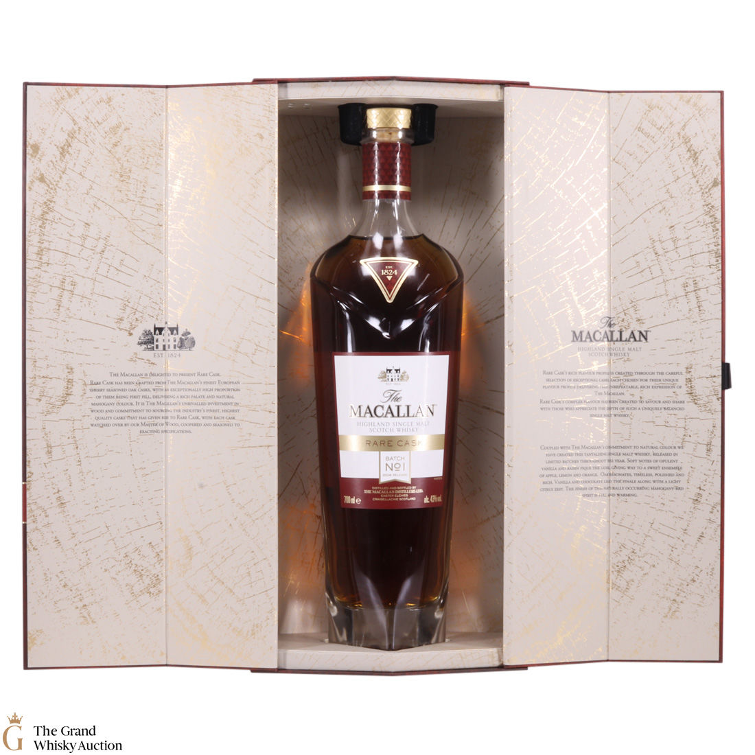The Macallan Rare Cask Batch No.1, 2018 release introduced a new look for Rare Cask which has been rebranded and revised. It is an attempt by Macallan to give greater insight into their whisky making process. This first batch was one of three batches to be released in 2018, with further batches planned for subsequent years. Each limited release batch represents the volume of only 50 oak sherry butts.