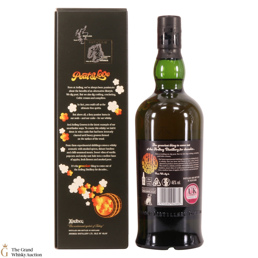 This limited edition Islay single malt was released to mark the 2018 Ardbeg Day at the Islay Festival of Music & Malt. The theme is a throwback to the Island's 1960s spirit, embodying the ideals of 'peat & love'! Ardbeg Grooves is crafted with ex-wine casks that are re-charred to create heavy grooves in the wood, allowing more interaction with the spirit and creating a richer flavour.