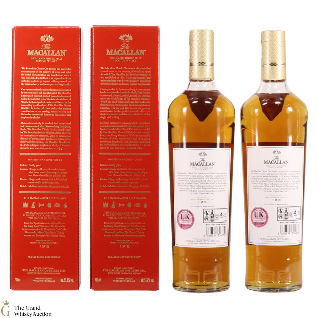 This lot contains 2 x 70cl bottles of The Macallan Classic Cut - 2018 edition. This is the second release in the limited annual series. It was matured exclusively in hand-picked oloroso sherry oak casks from Jerez, Spain, before being bottled at 51.2% ABV.