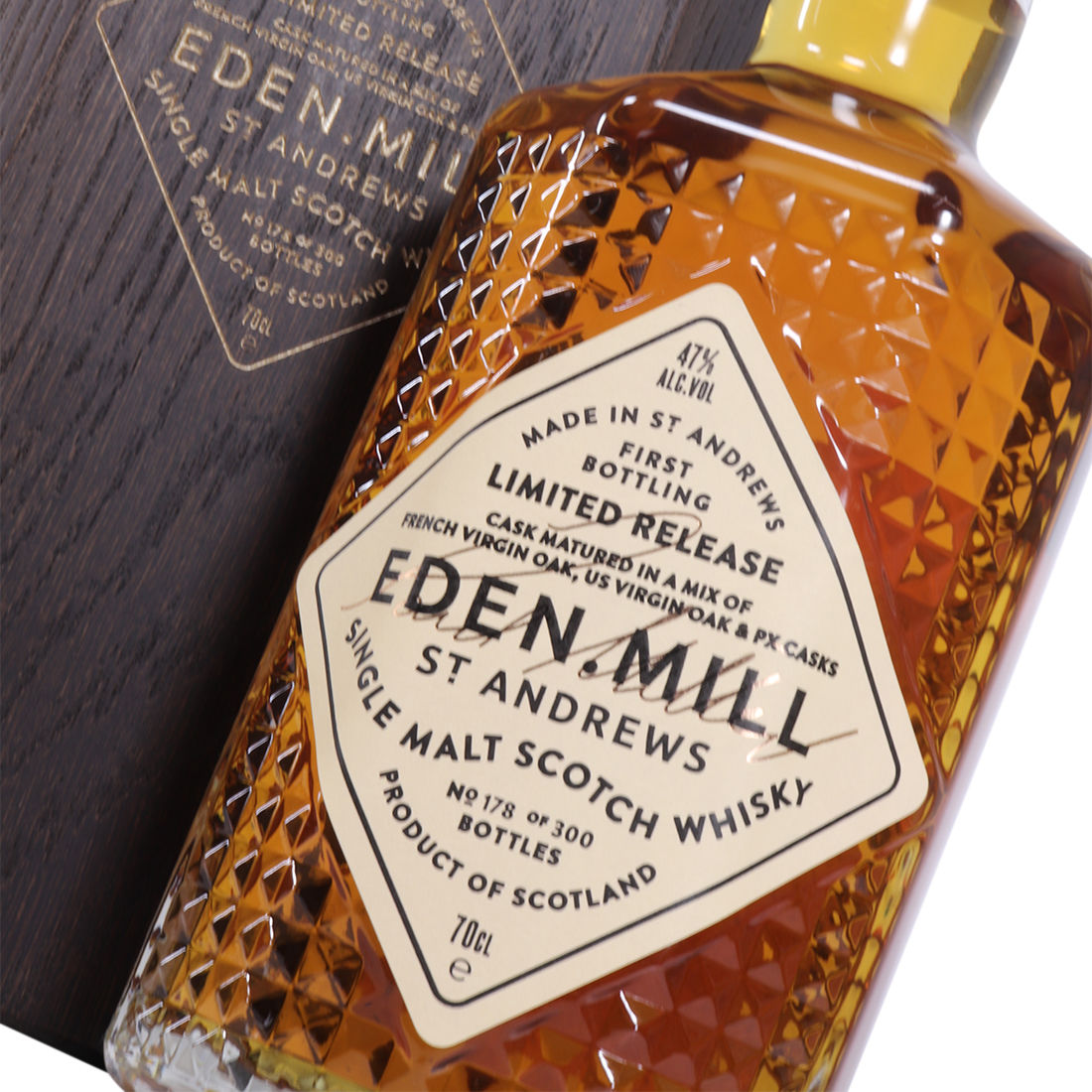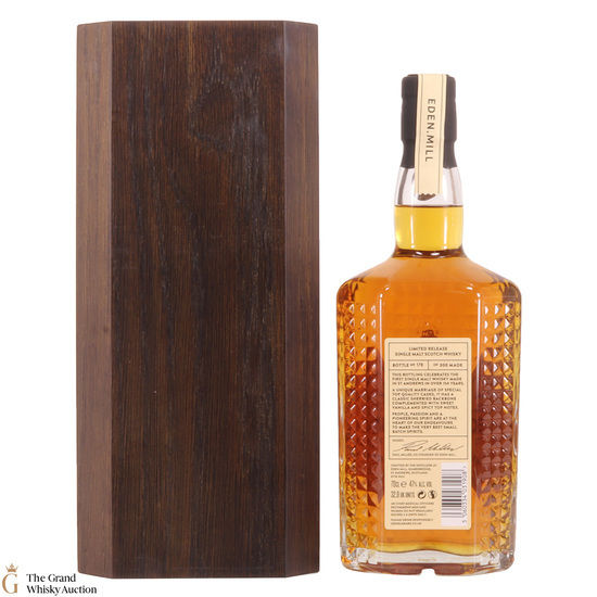 he first whisky produced in St. Andrews for over 150 years, this elegantly packaged dram has been matured in a combination of French virgin oak, US virgin oak, and Pedro Ximinez casks.