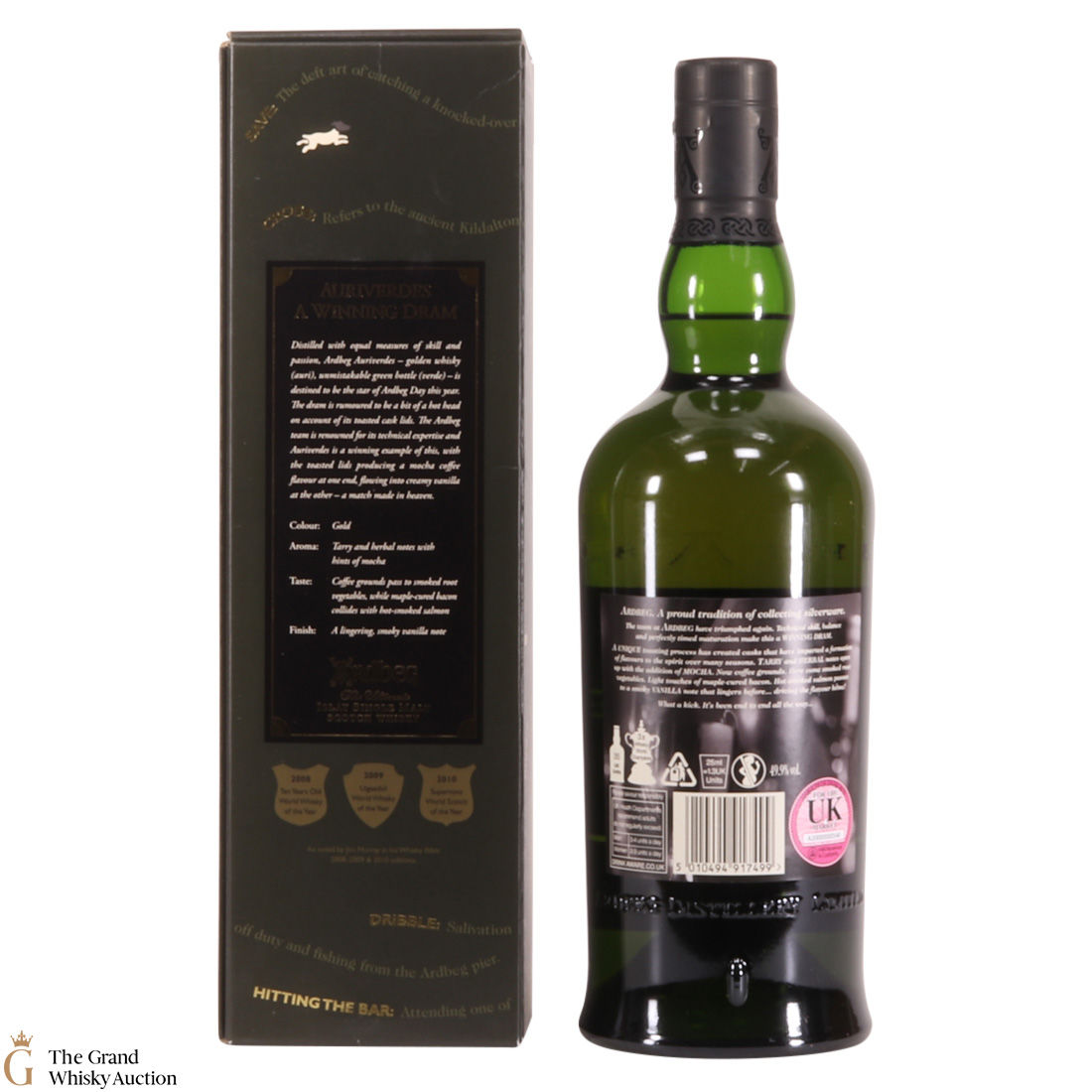 This special edition Ardbeg single malt was released on Ardbeg Day 2014. during Feis Ile. Auri(Gold) verdes (Green) it refers to the golden whisky and the iconic Ardbeg green bottle of Ardbeg whisky. It is said to be a dram of two halves - the whisky uses toasted cask lids to create Mocha Coffee flavours that team up with creamy vanilla.