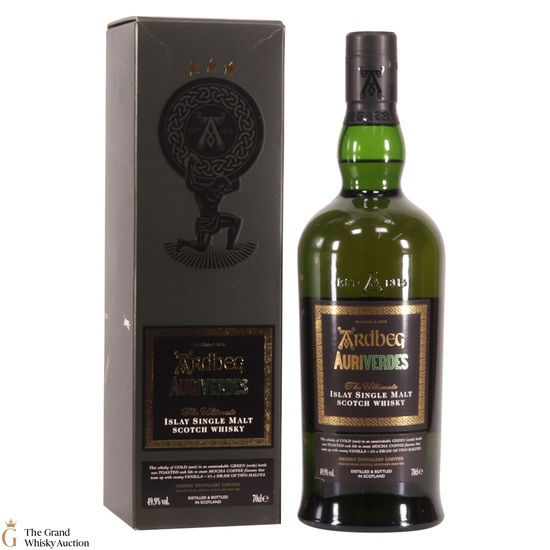 This special edition Ardbeg single malt was released on Ardbeg Day 2014. during Feis Ile. Auri(Gold) verdes (Green) it refers to the golden whisky and the iconic Ardbeg green bottle of Ardbeg whisky. It is said to be a dram of two halves - the whisky uses toasted cask lids to create Mocha Coffee flavours that team up with creamy vanilla.
