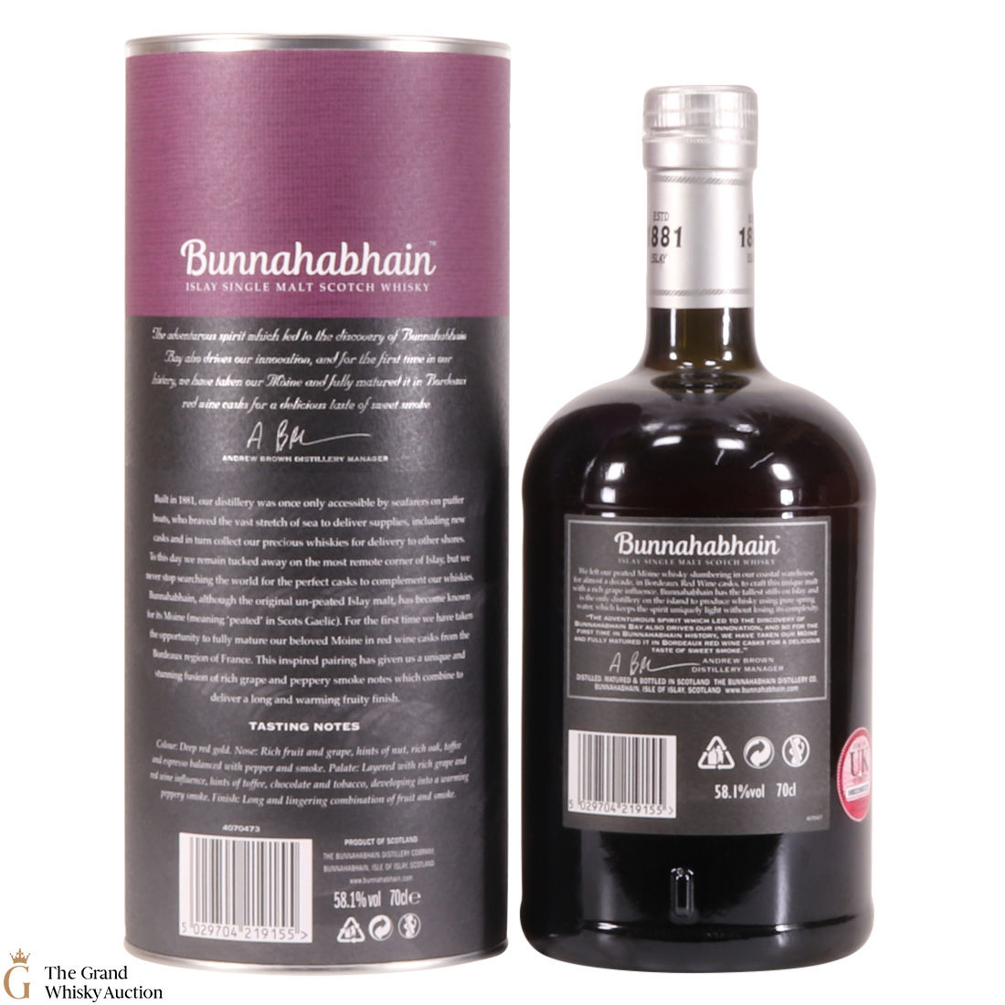 'Mòine' meaning peated in Gaelic - this release brings together both peat smoke and a richly flavoured red-wine cask. This limited release was fully matured in red wine casks from Bordeaux. Distilled in 2008 and matured for 9 years in warehouse No.8. This is one of 4536 individually numbered bottles.