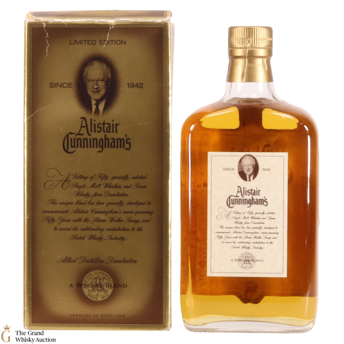 A special edition blended whisky from Hiram Walker to commemorate Alistair Cunningham's 50th year with the company in 1995. It's not a 50 year old whisky, but instead a blend of 50 malt whiskies and grain from Dumbarton. This is a 75cl bottling.