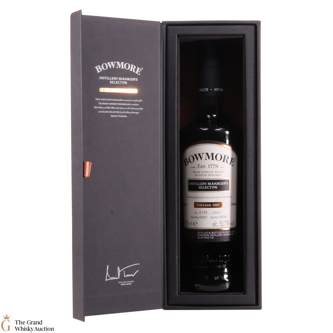 This is one of only 3000 individually numbered bottles, released exclusively at Bowmore Distillery in 2019. This limited release, from the home of the legendary No. Vaults, was specially selected by Distillery Manager David Turner, after being matured in first-fill Oloroso Sherry Hogsheads.