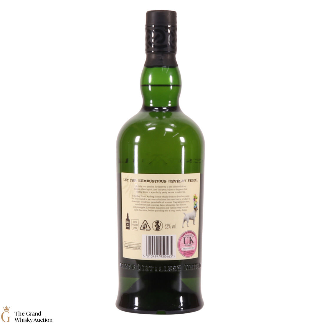 This is the 2019 Ardbeg Committee Release. The Ardbeg Drum is a non-age-statement single malt matured in ex-Bourbon casks and then finished in ex-rum casks from the Americas. It was created to celebrate Ardbeg Day 2019 (June 1) held during the Islay Festival of Music & Malt (Fèis Ìle).