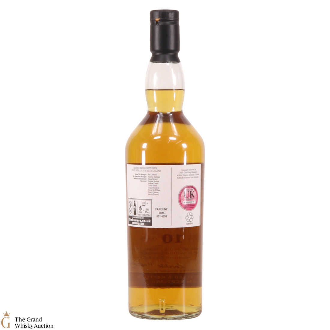 Due to the various ages of bottles and their seals, the condition of liquid is at the buyer's discretion and no claim can be lodged against failure/leakage in transit. Loss and breakage cover is available at 3% of the hammer price as standard. If the lot is not insured, no claim can be lodged against the courier or The Grand Whisky Auction for breakage or loss in transit.