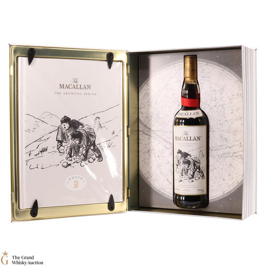 The theme of the Folio 3 is Macallan's advertising campaigns from the 1980s and 1990s. The presentation includes a book containing the best of these. The illustration on the box is from an advert used in a Victorian-era edition of Punch Magazine. It is intended to capture the sentiment that whisky is best produced in cold weather - a remark that Macallan claim was made on their very own estate at Easter Elchies.