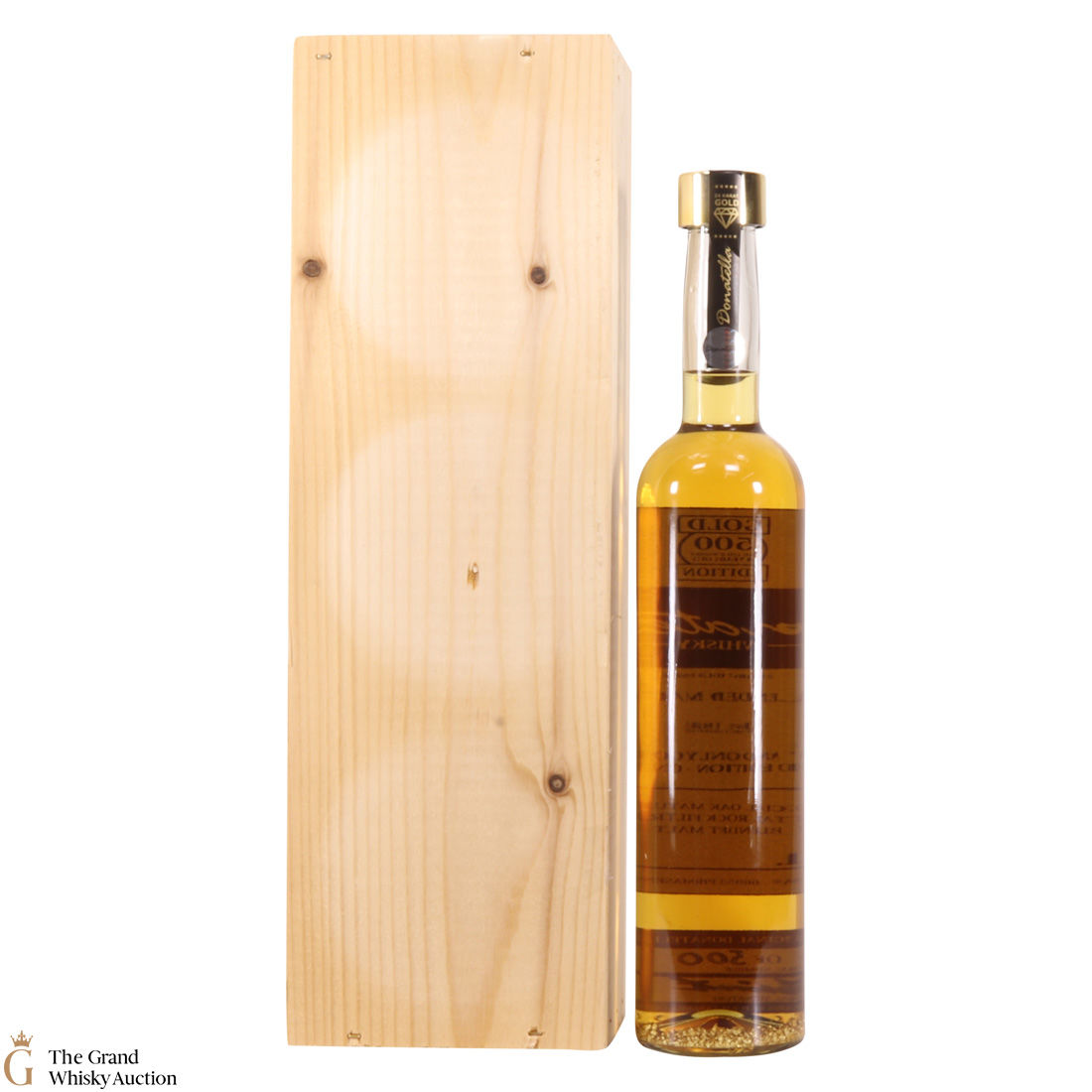 8 Years old and distilled in the highlands. This half-litre bottle contains specs of 24K gold. Only 500 bottles have been produced worldwide and were designed by Matthias Steinmetz.