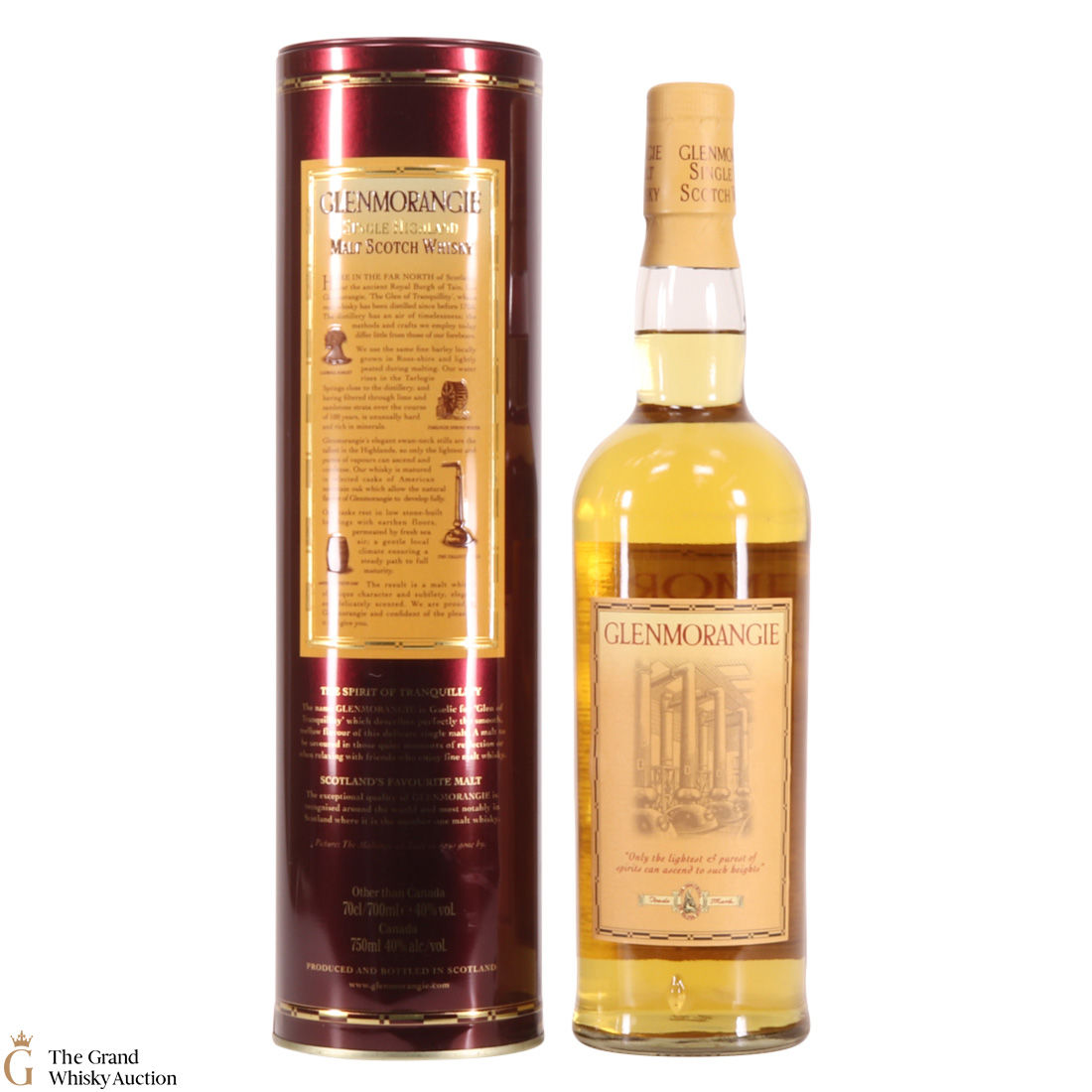 This is an old and rare bottling of Glenmorangie 10 year old which comes with its original presentation tin. A handsome relic of yesteryear.