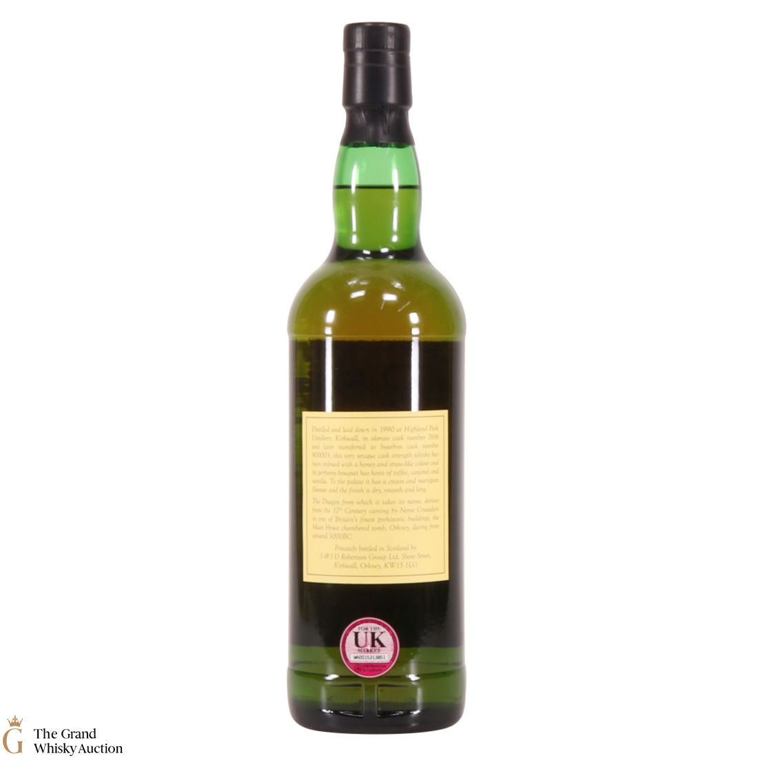 This 19 year old single malt is from Orkney's Highland Park Distillery, distilled back in 1990. It was matured in Oloroso sherry cask #7616 and later transferred to bourbon cask #900001. It was bottled nearly two decades later by S. & J. D. Robertson, at natural cask strength, as part of The Dragon Range. The Dragon Bottlings are legendary and highly sought after by many.
