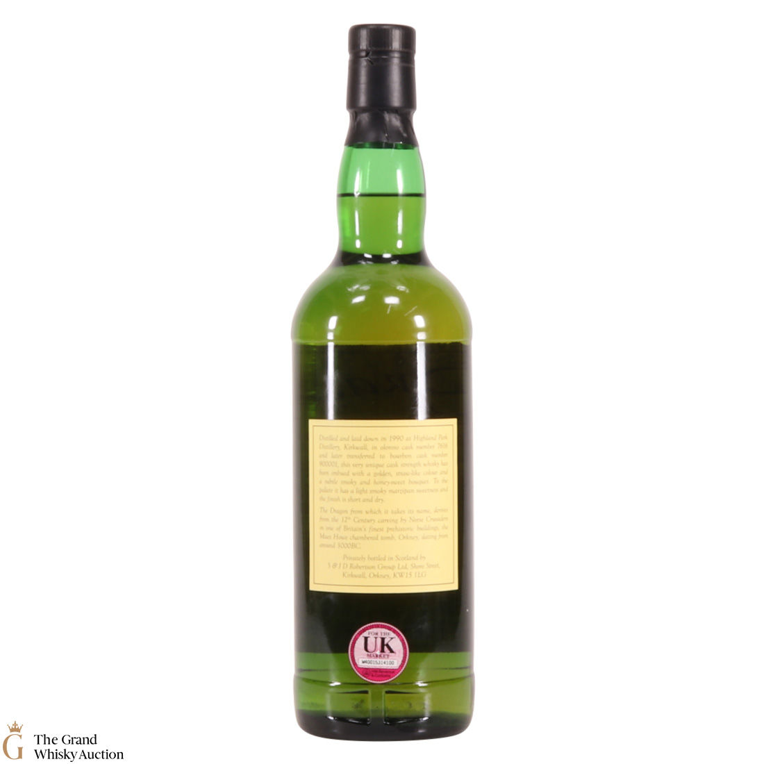 This 19 year old single malt is from Orkney's Highland Park Distillery, distilled back in 1990. It was matured in Oloroso sherry cask #7616 and later transferred to bourbon cask #900003. It was bottled nearly two decades later by S. & J. D. Robertson, at natural cask strength, as part of The Dragon Range. The Dragon Bottlings are legendary and highly sought after by many.