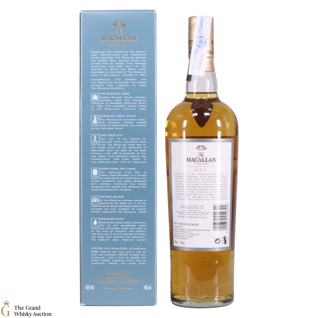 Due to the various ages of bottles and their seals, the condition of liquid is at the buyer's discretion and no claim can be lodged against failure/leakage in transit. Loss and breakage cover is available at 3% of the hammer price as standard. If the lot is not insured, no claim can be lodged against the courier or The Grand Whisky Auction for breakage or loss in transit.