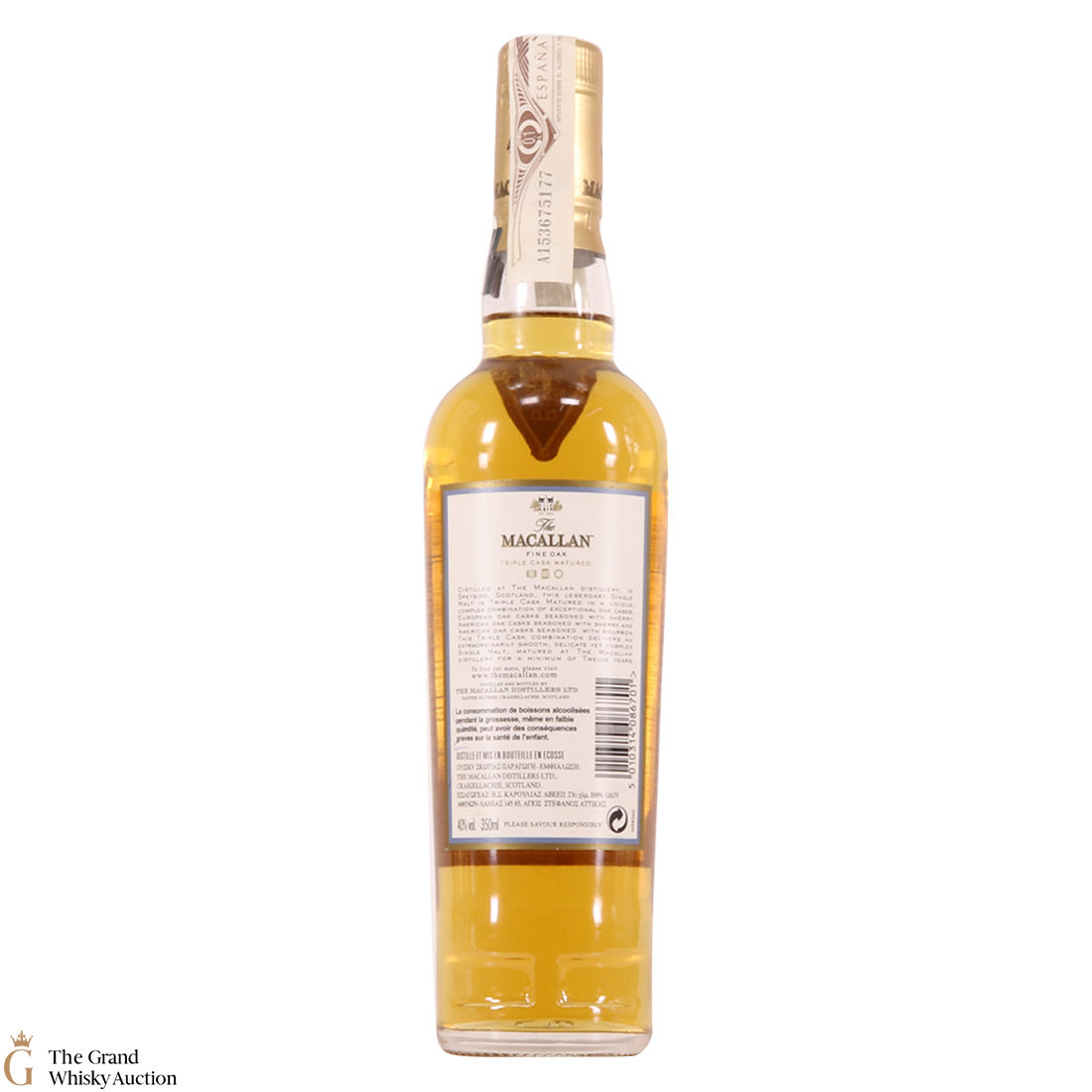 This 12 year old single malt is part of Macallan's Fine Oak, triple cask matured range. It has been matured for twelve years in three oak cask types; Europen oak seasoned with sherry, American oak seasoned with sherry and American oak seasoned with bourbon. The Macallan Fine Oak 12 Year Old is medium-bodied and balanced with fruit, oak and spice.