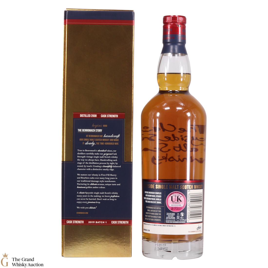 Due to the various ages of bottles and their seals, the condition of liquid is at the buyer's discretion and no claim can be lodged against failure/leakage in transit. Loss and breakage cover is available at 3% of the hammer price as standard. If the lot is not insured, no claim can be lodged against the courier or The Grand Whisky Auction for breakage or loss in transit.