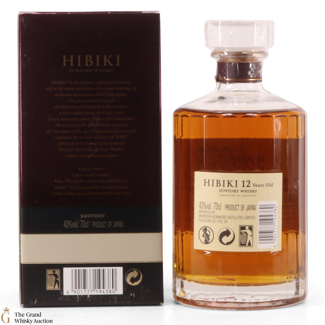 This now-discontinued Hibiki 12 year old is a superb blended Japanese whisky meaning it has become a very popular, rare and collectable bottling. Hibiki includes malt whisky from Yamazaki and Hakushu, as well as grain whisky from Chita. The whisky is partly matured in plum liqueur barrels. Unfortunately, Hibiki 12 was discontinued by Suntory in 2015.
