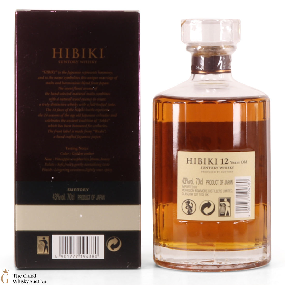 This now-discontinued Hibiki 12 year old is a superb blended Japanese whisky meaning it has become a very popular, rare and collectable bottling. Hibiki includes malt whisky from Yamazaki and Hakushu, as well as grain whisky from Chita. The whisky is partly matured in plum liqueur barrels. Unfortunately, Hibiki 12 was discontinued by Suntory in 2015.