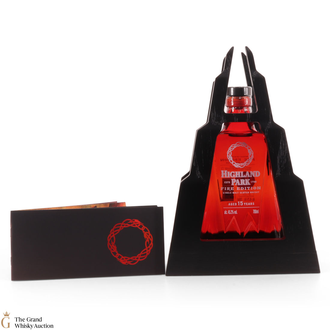 This stunning Highland Park 15 year old single malt follows the 'Ice' edition to complete this Highland Park two-part series. The 'Fire' edition celebrates Muspelheim, the glowing Norse fire realm of destruction. The malt was matured in refill Port casks and bottled at 45.2% abv. It's presented in a cradle shaped like a mountain.