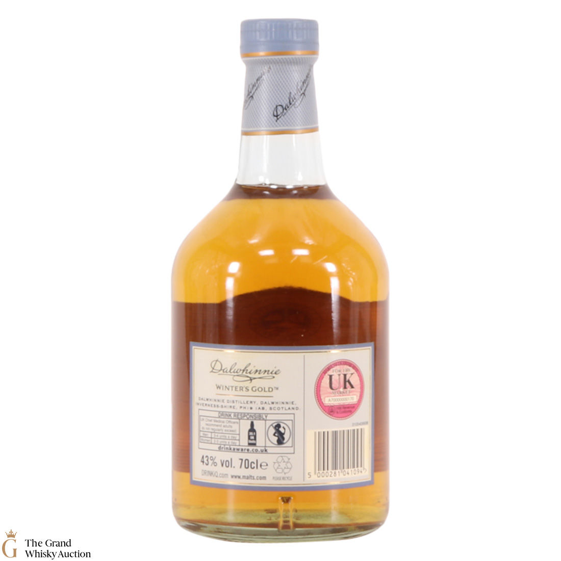 Due to the various ages of bottles and their seals, the condition of liquid is at the buyer's discretion and no claim can be lodged against failure/leakage in transit. Loss and breakage cover is available at 3% of the hammer price as standard. If the lot is not insured, no claim can be lodged against the courier or The Grand Whisky Auction for breakage or loss in transit.