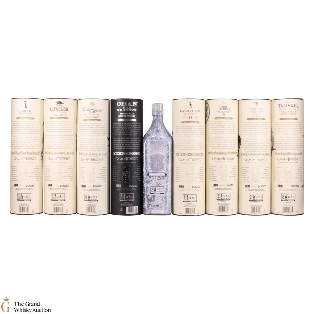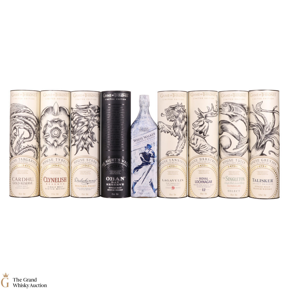 Each of the Game of Thrones Scotch whiskies has been paired with a particular house from the seven kingdoms in the television series, plus also the Night's Watch guard.
