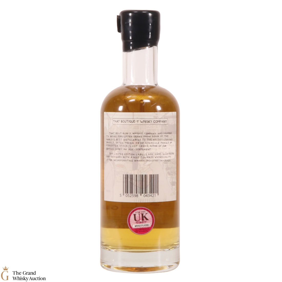 Due to the various ages of bottles and their seals, the condition of liquid is at the buyer's discretion and no claim can be lodged against failure/leakage in transit. Loss and breakage cover is available at 3% of the hammer price as standard. If the lot is not insured, no claim can be lodged against the courier or The Grand Whisky Auction for breakage or loss in transit.