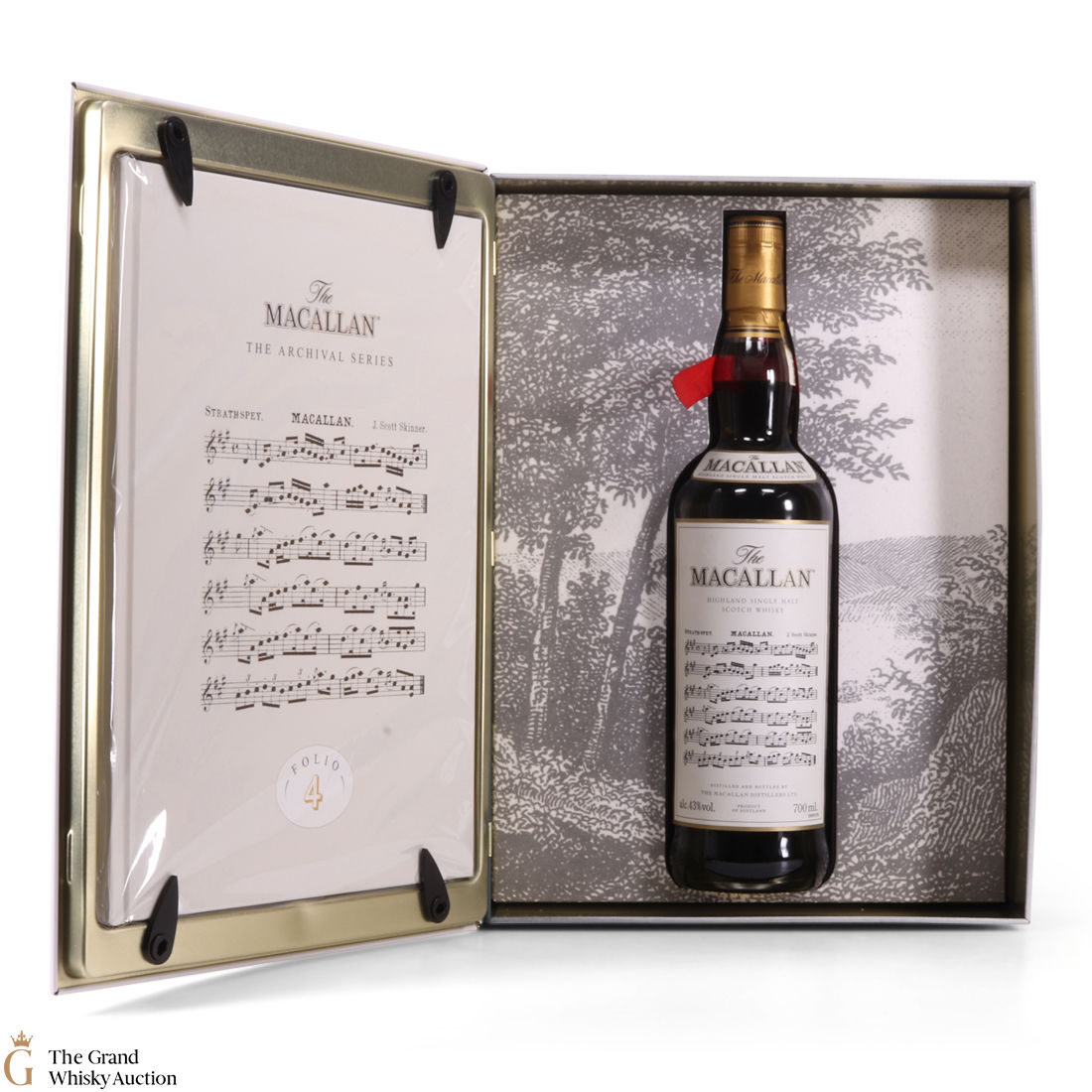 The fourth edition in the Archival Series from The Macallan. Folio 4 remembers the legendary advertising campaigns of the 1970s, 1980s and 1990s that brought The Macallan to the public’s attention outside of Scotland. It is presented in a beautiful book shaped, tin case. It features an advertisement including a Strathspey composed by James Scott Skinner (1843-1927). The advert notes that Skinner was so moved by his favourite malt he created a unique piece of music featuring his signature lilting notes with the simple catchphrase: “The Macallan. The Malt.”