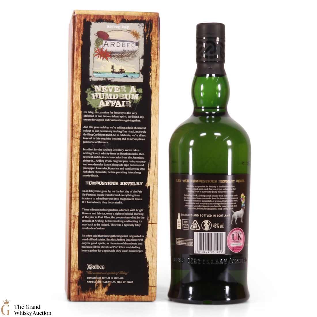 This is the 2019 Ardbeg Drum Limited edition. The Ardbeg Drum is a non-age-statement single malt matured in ex-Bourbon casks and then finished in ex-rum casks from the Americas. It was created to celebrate Ardbeg Day 2019 (June 1) held during the Islay Festival of Music & Malt (Fèis Ìle).