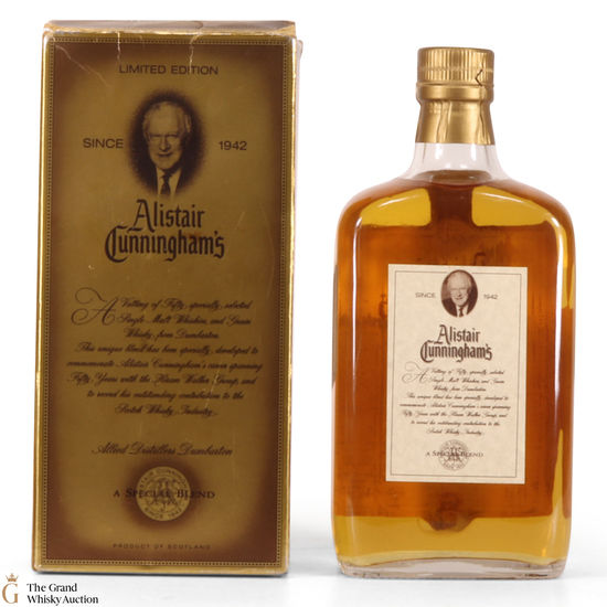 A special edition blended whisky from Hiram Walker to commemorate Alistair Cunningham's 50th year with the company in 1995. It's not a 50 year old whisky, but instead a blend of 50 malt whiskies and grain from Dumbarton. This is a 75cl bottling.