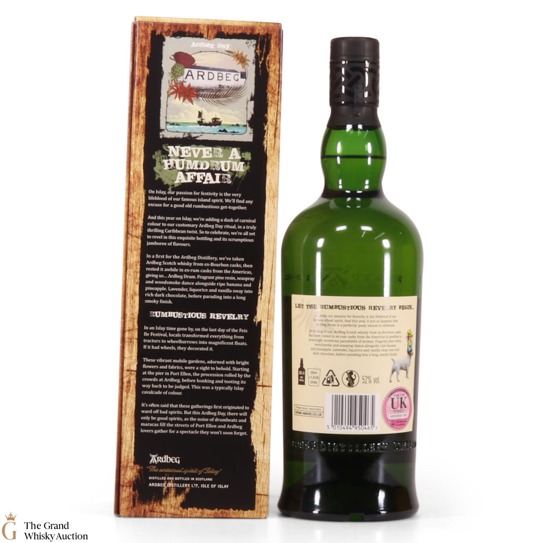 This is the 2019 Ardbeg Drum Limited edition. The Ardbeg Drum is a non-age-statement single malt matured in ex-Bourbon casks and then finished in ex-rum casks from the Americas. It was created to celebrate Ardbeg Day 2019 (June 1) held during the Islay Festival of Music & Malt (Fèis Ìle).
