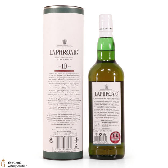 This bottling is from batch 009, original cask strength bottling of the medicinal 10-year-old from Islay's bestselling distillery, Laphroaig. In making Laphroaig, malted barley is dried over a peat fire. The smoke from this peat, found only on Islay, gives Laphroaig its particularly rich flavour. This release was bottled at 58.1% in February 2017.