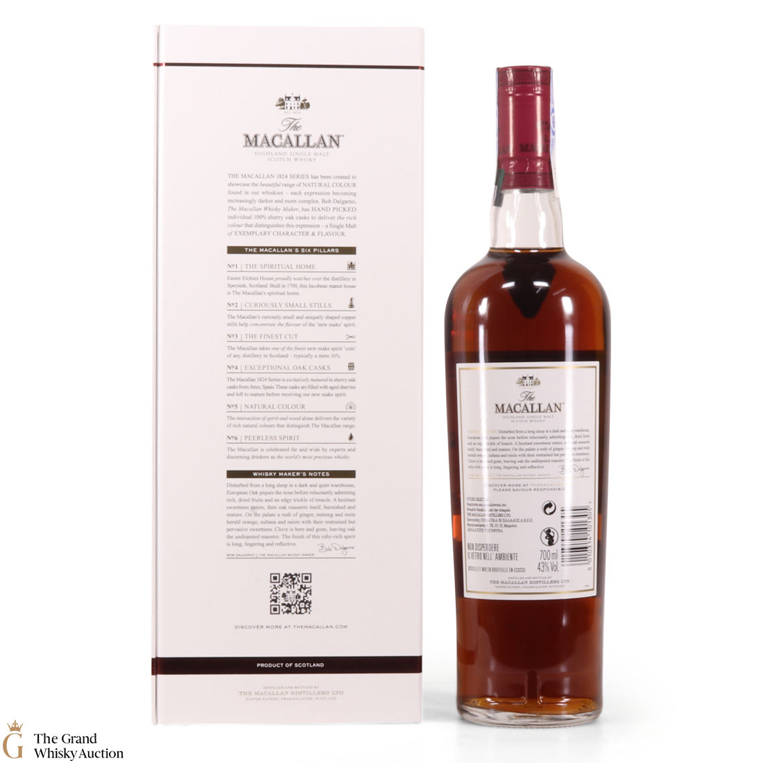 The Macallan 1824 Series celebrates natural colour. The most distinctive and defining characteristic of Macallan is the sherry-seasoned oak casks that are used to mature the whisky. This series shows commitment to 100% natural colour, drawn from wood. The colour of each expression becomes deeper as the range progresses.