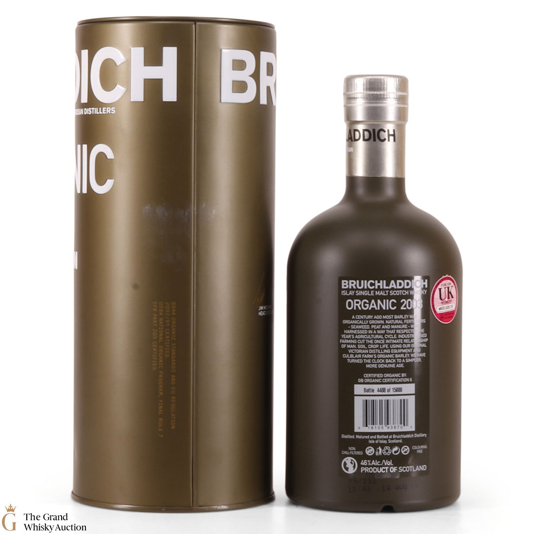 A fully organic Bruichladdich 2003 - a century ago most barley was organically grown; natural fertilisers – seaweed, peat and manure – were harnessed in a way that respected the year’s agricultural cycle. 2003 was a particularly fine harvest of Chalice barley for William rose at Culblair Farm. Supreme quality barley combined with a slow trickle-distillation to do it justice, and new oak has resulted in Bruichladdichs creamiest release yet. This is a limited edition release of 15,000 numbered bottles and Bruichladdichs first organic release - The name means 'In the Traditional Way.'