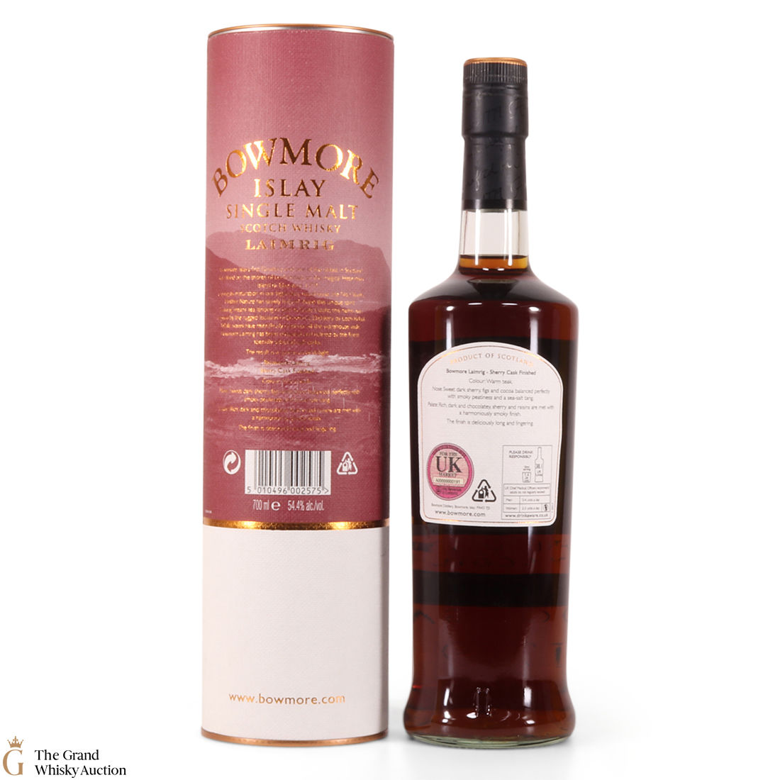 A 15-Year-Old Bowmore was released for the Fèis Ìle 2011 matured exclusively in sherry butts and bottled at cask strength of 54.8%. This is one of just 500 bottles produced. The bottling has been named 'Laimrig' which is Gaelic for 'Pier' and the bottling celebrates Bowmore's stone pier.