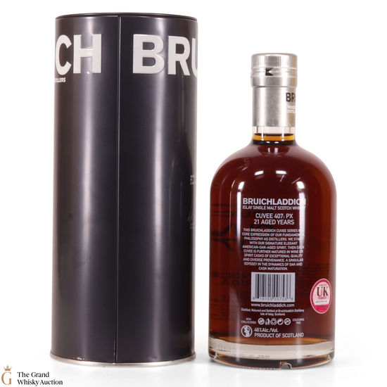 This is one of the three initial releases in Bruichladdich's Cuvee range. Cuvee 407 is simply named PX and is subtitled 'La Noche Bocca Arriba', the title of a short story by Julio Cortázar. It is a 21 year old single malt, matured in American oak and then finished in Pedro Ximenez casks.