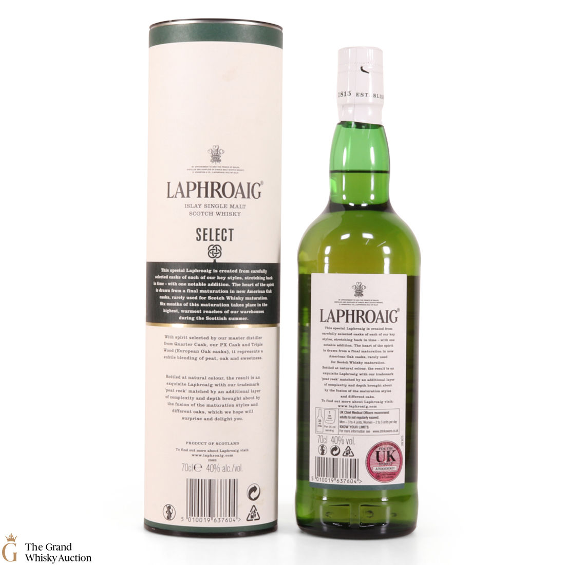 Laphroaig Select has been created using a combination of whisky from a number of different types of cask, including Oloroso Sherry butts, white American oak, Pedro Ximenez seasoned hogsheads, quarter casks and first-fill bourbon casks.
