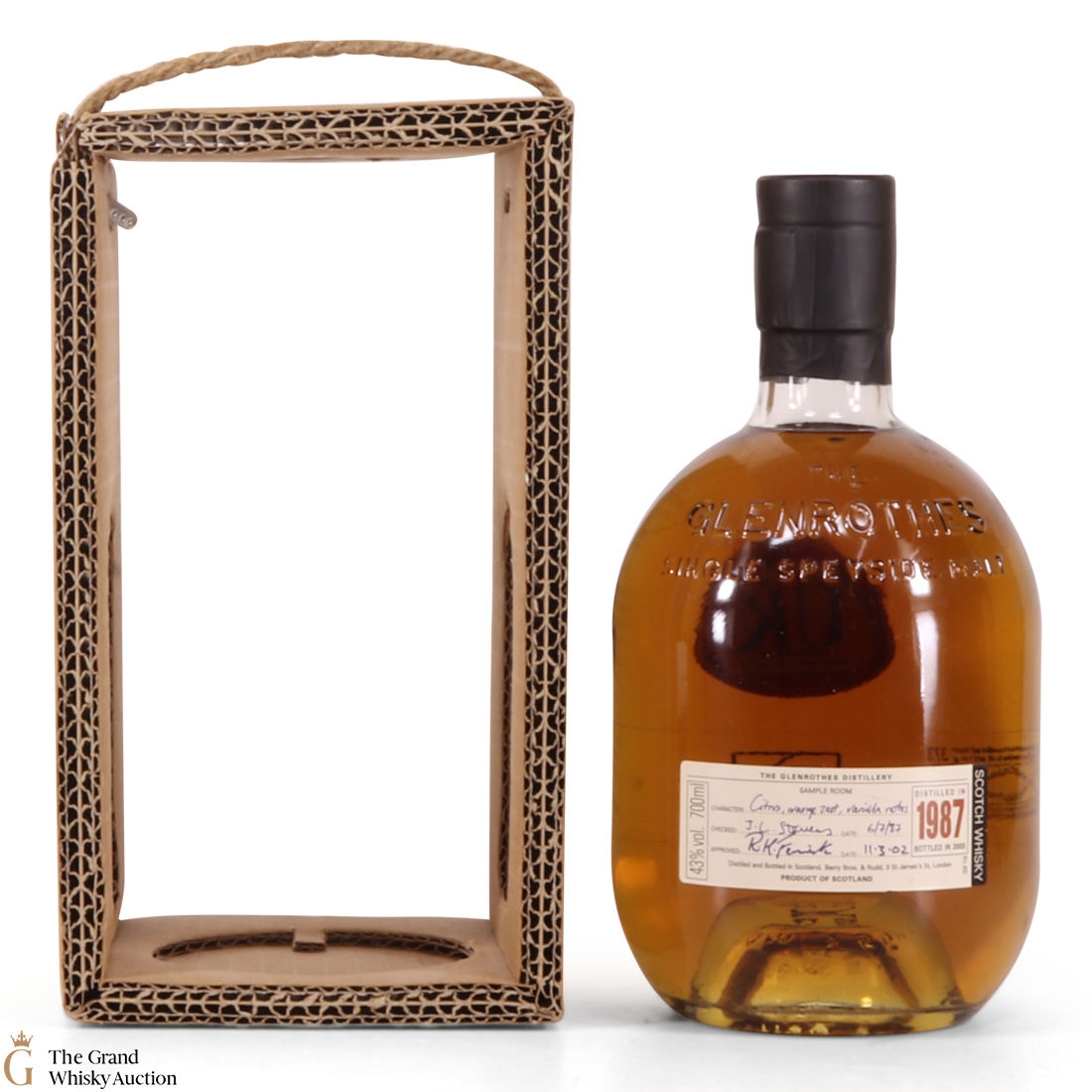 Due to the various ages of bottles and their seals, the condition of liquid is at the buyer's discretion and no claim can be lodged against failure/leakage in transit. Loss and breakage cover is available at 3% of the hammer price as standard. If the lot is not insured, no claim can be lodged against the courier or The Grand Whisky Auction for breakage or loss in transit.
