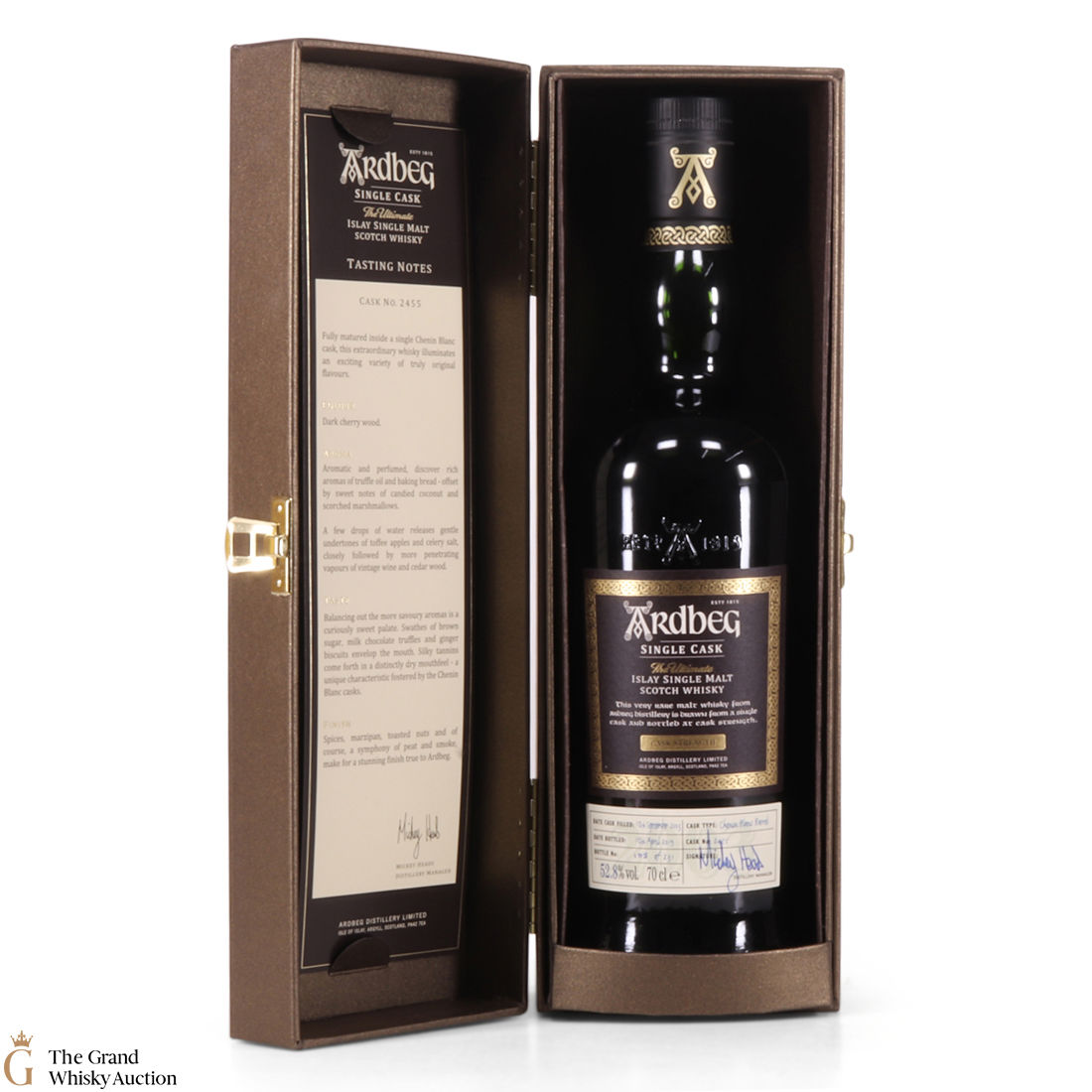 This single cask bottling was available exclusively at Ardbegs Fèis Ìle open day. This is one of two released for 2019. It was distilled in 2003 and bottled from Chenin blanc barrel #4586 in April 2019 at the natural cask strength of 52.8%. This is one of 231 bottles.
