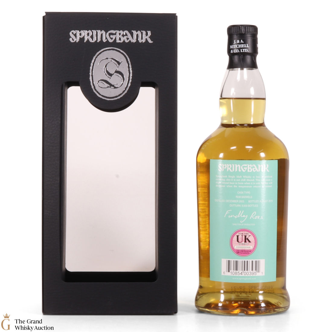 This is a limited edition, single malt Scotch whisky from Springbank distillery bottled and released in 2019. The whisky was fully matured in rum casks for 15 years. Bottled at a cask strength of 51.0% this is one of only 9,000 bottles released worldwide.