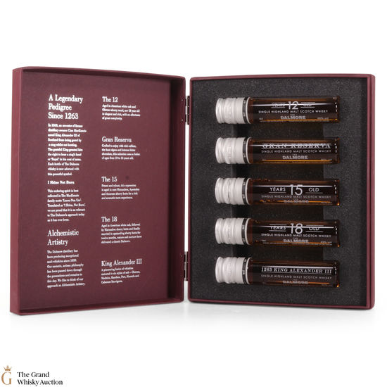 A special box of 5 Dalmore expressions. This 'I Shine | Not Burn' set contains 5 x 4cl Dalmore vials.
