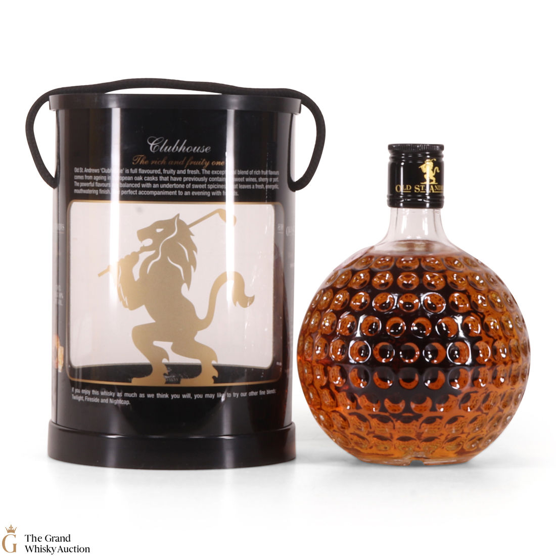 Old St Andrews Clubhouse, a blended whisky in the bottle form of a golf ball-shaped decanter.