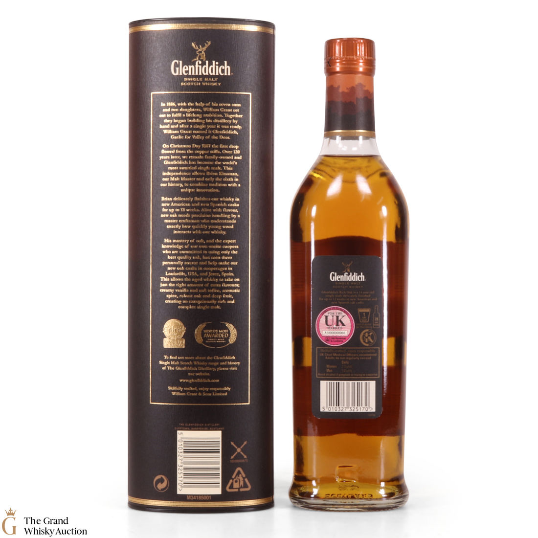 After 14 years maturing in fine American oak casks, the Glenfiddich Malt Master carefully selected virgin Spanish and American oak casks to release extra layers of aroma and flavour. This is said to be the first virgin American and European oak finished whisky in the world.