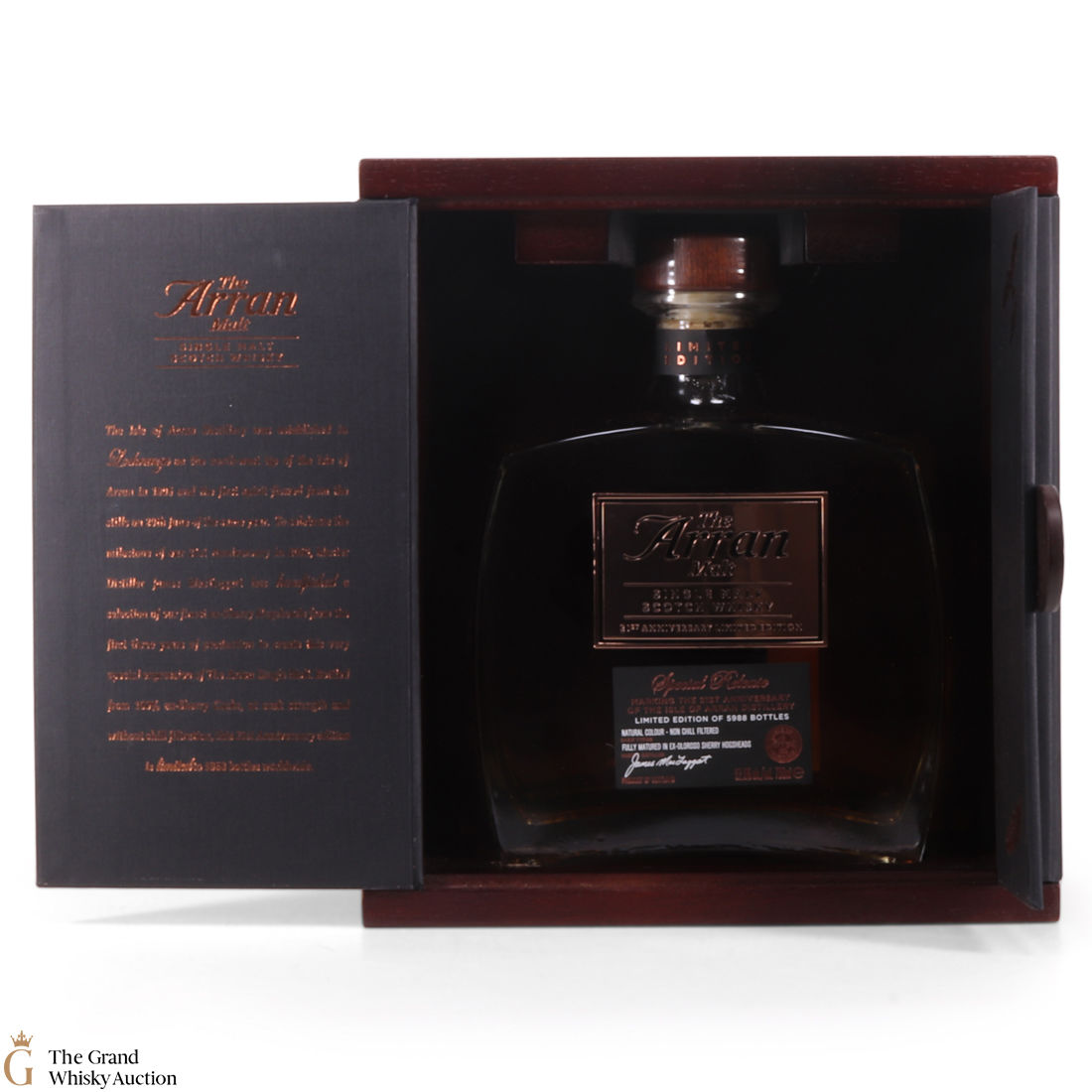 A limited-edition bottling of single malt from the Arran distillery to celebrate their 21st anniversary! The whisky used was distilled during the first three years of their production, matured in Sherry hogsheads. This is one of 5,988 bottles produced.
