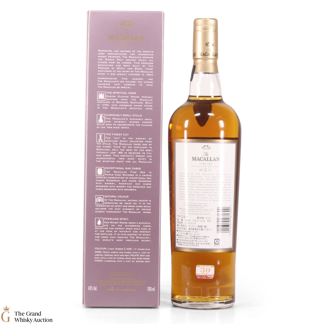 The Macallan Fine Oak 17 Years Old is part of the Macallan Fine Oak range. It has been matured for a minimum of seventeen years in three oak cask types including American and European ex-oloroso sherry and American oak bourbon casks. It was introduced to the US market in 2006.