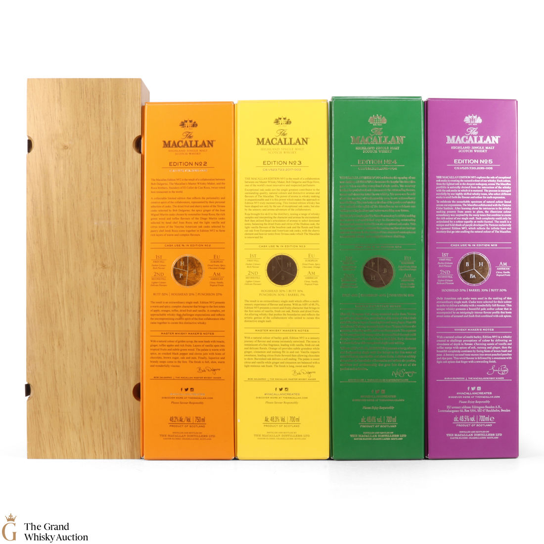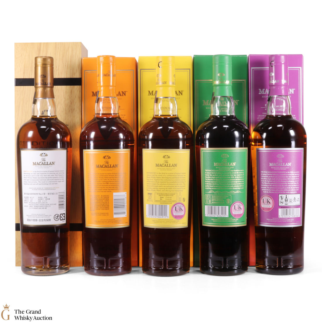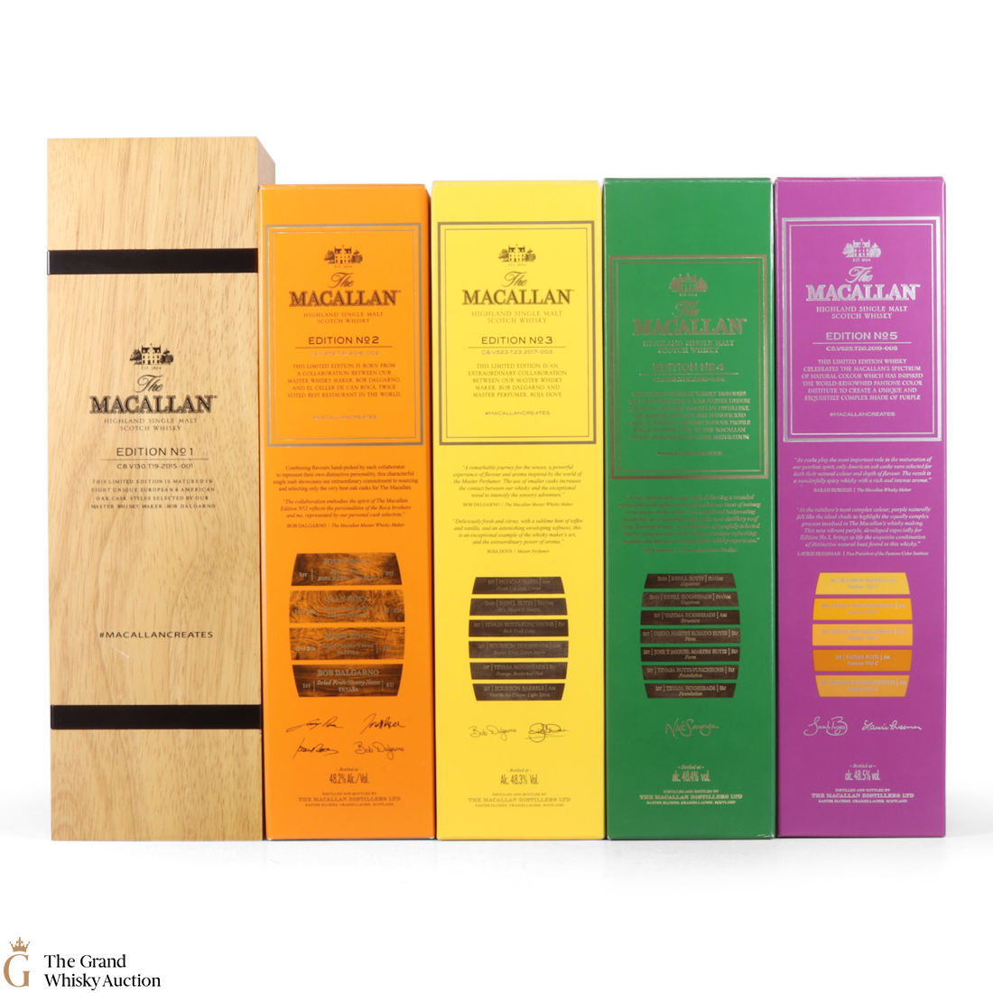 This lot brings together the Macallan Edition set to date, comprising of Edition no. 1, 2, 3 4 and 5 in the annual limited edition series.