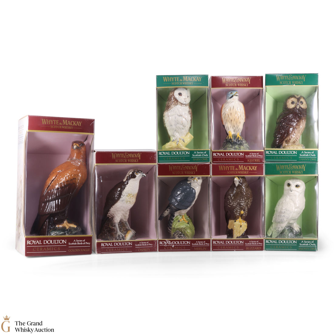 A highly collectible series of decanters produced by John Tongue in 1984 for Royal Doulton and Whyte & Mackay. This lot includes: