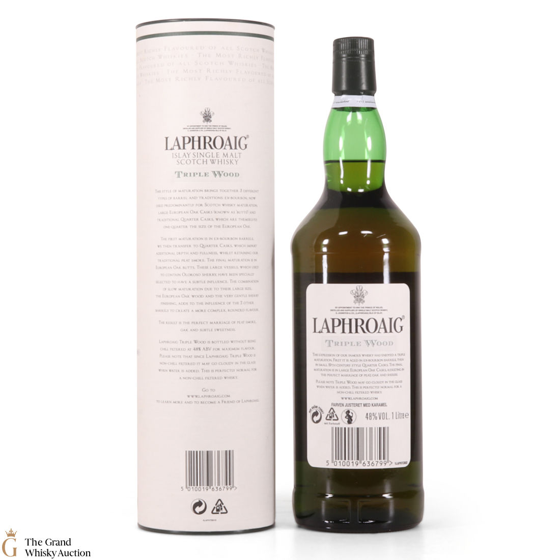 This a 1-litre bottling of Laphroaig Triple wood. It was originally launched for the duty-free market but the Triple Wood has become a core expression from Laphroaig. The single malt has been triple matured; in bourbon barrels, quarter casks and then Oloroso sherry butts.