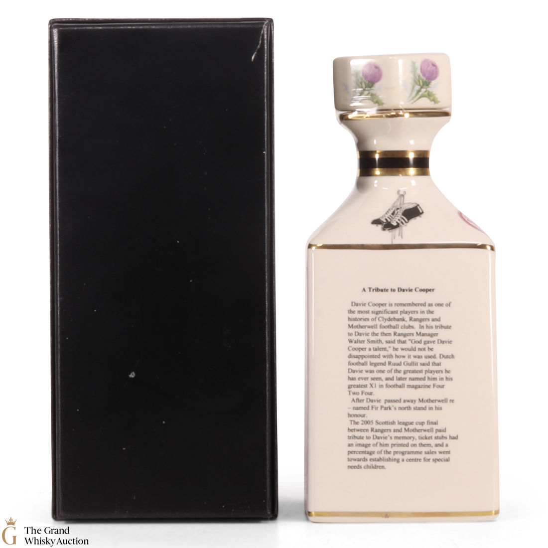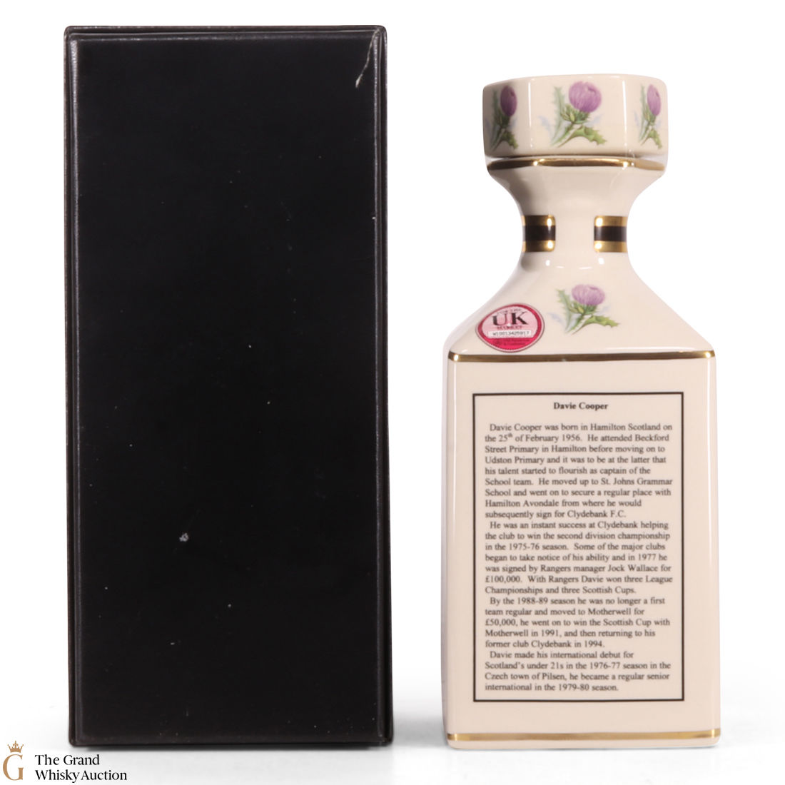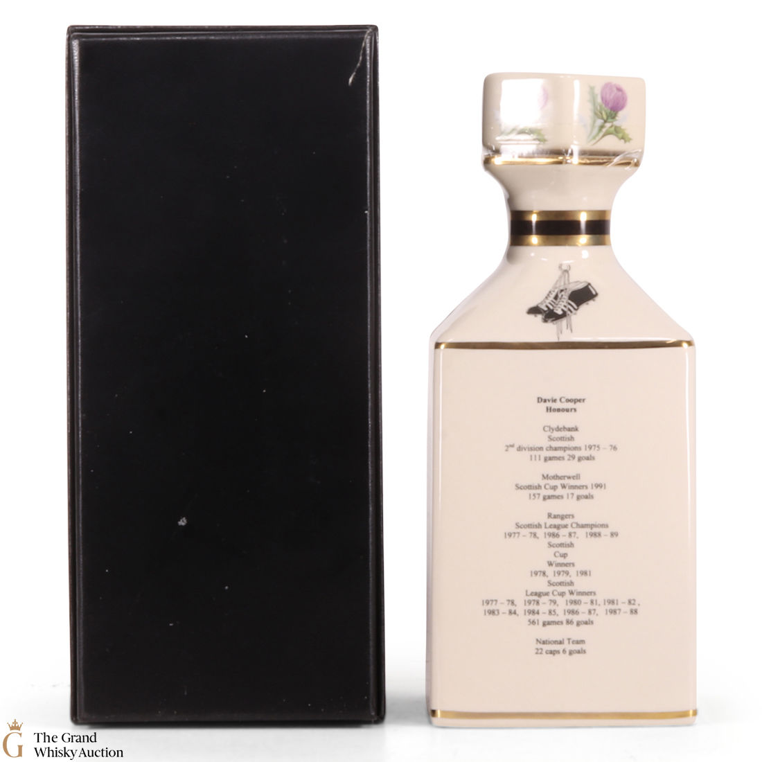 Most well known for depicting famous people, this bottling is of Glasgow ranger player Davie Cooper.