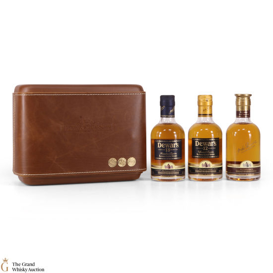 A beautifully presented three pack of Dewar's in a leather case.