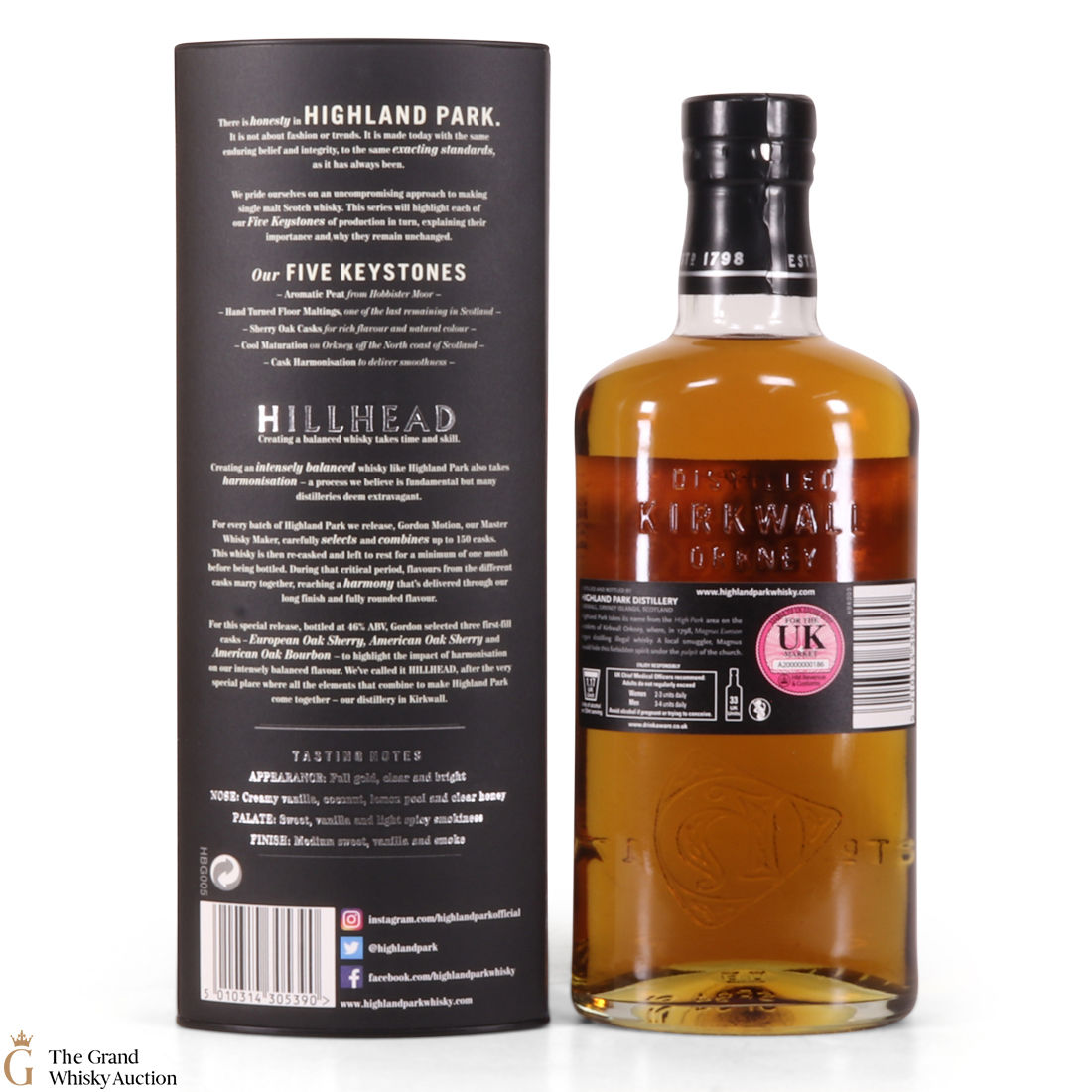 'Hillhead' bottled at 46% ABV, marries both flavour and strength and was matured in three casks: European Oak Sherry, American Oak Sherry and American Oak Bourbon. Hillhead was the last in a series of five special editions, showcasing Highland Park's five keystones of production.